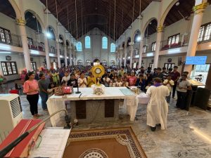 St Antony Church is constructed on a small hill located on the banks of river Phalguni. When NH 66 was being widened, a landslide destroyed part of the church, making a new building necessary. A project was taken up in this regard during the tenure of parish priest Fr Harold C D’Souza and was completed at the cost of Rs 4 crore with 90% of the contributions are from the parishioners.